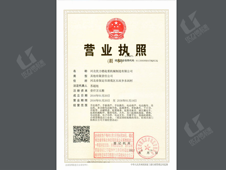 公司名稱:河北優(yōu)力德起重機(jī)械制造有限公司